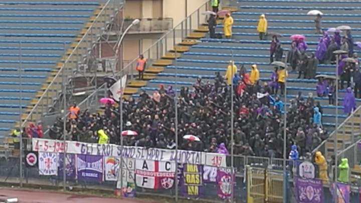 "4-5-1949: gli eroi sono sempre immortali agli occhi di chi in essi crede". Questo quanto recita lo striscione fissato dai tifosi della Fiorentina ai piedi del settore loro riservato per la trasferta di Empoli. Loro, gemellati con quelli del Torino da oltre 40 anni.