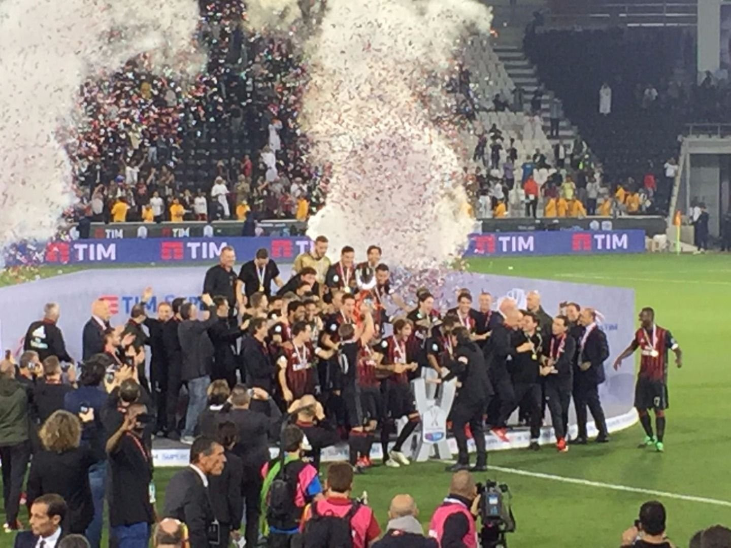 La Supercoppa Italiana è del Milan. La squadra di Vincenzo Montella vince la finale contro la Juventus ai rigori. Decisivi per i bianconeri gli errori dagli undici metri di Mandzukic (che colpisce la traversa) e Dybala (Donnarumma para il suo tiro).