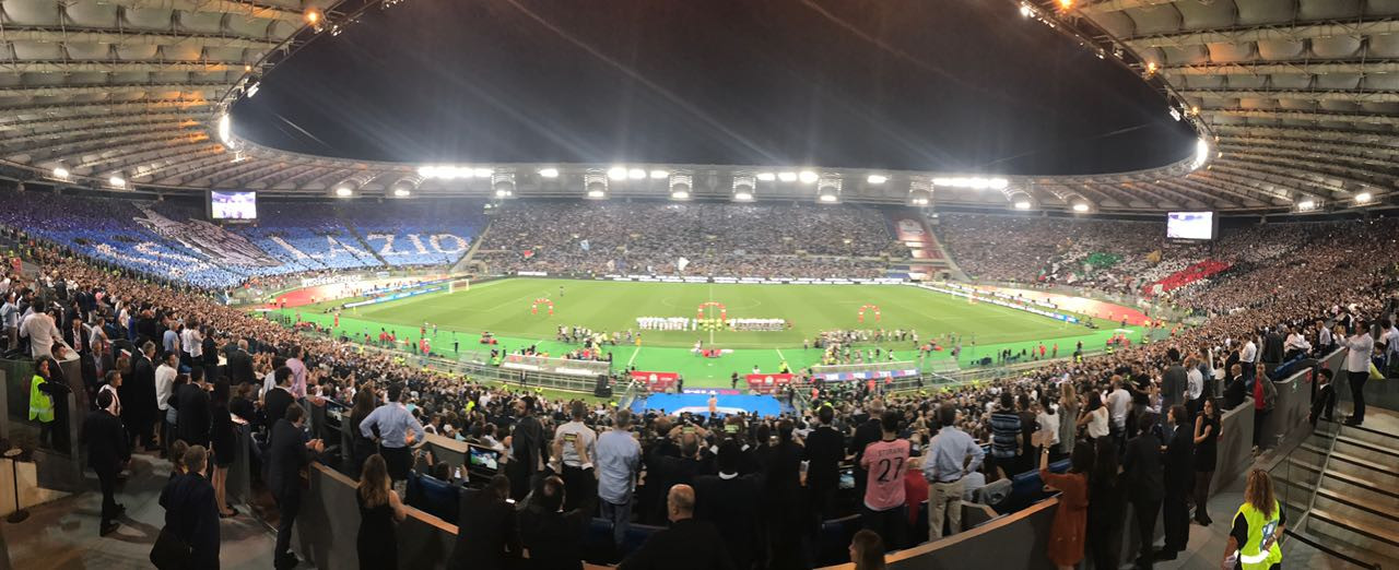 Prima del fischio d’inizio le curve dell’Olimpico si sono colorate con le coreografie delle due tifoserie: Juventus-Lazio è iniziata così. Un tricolore dalla Sud, riservata ai fan bianconeri, la scritta SS Lazio con una grande aquila invece il colpo d’occhio offerto dalla curva nord biancoceleste. La finale di Coppa Italia è anche questo.