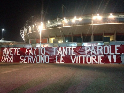Ma non è questa l’unica notizia che riguarda il prepartita di Torino-Cagliari. Come promesso proprio dai tifosi della Maratona, è scattata una contestazione nei confronti della squadra allenata da Mihajlovic. Due sono gli striscioni che campeggiano all’esterno dello stadio “Grande Torino”: “Fuori gli attributi”, recita uno; “Troppe parole, ora vogliamo le vittorie” dice l’altro. Ai tifosi non sono piaciute le ultime, decisamente negative, prestazioni della squadra. E la mini contestazione è scattata, con la speranza che possa sortire gli effetti desiderati.