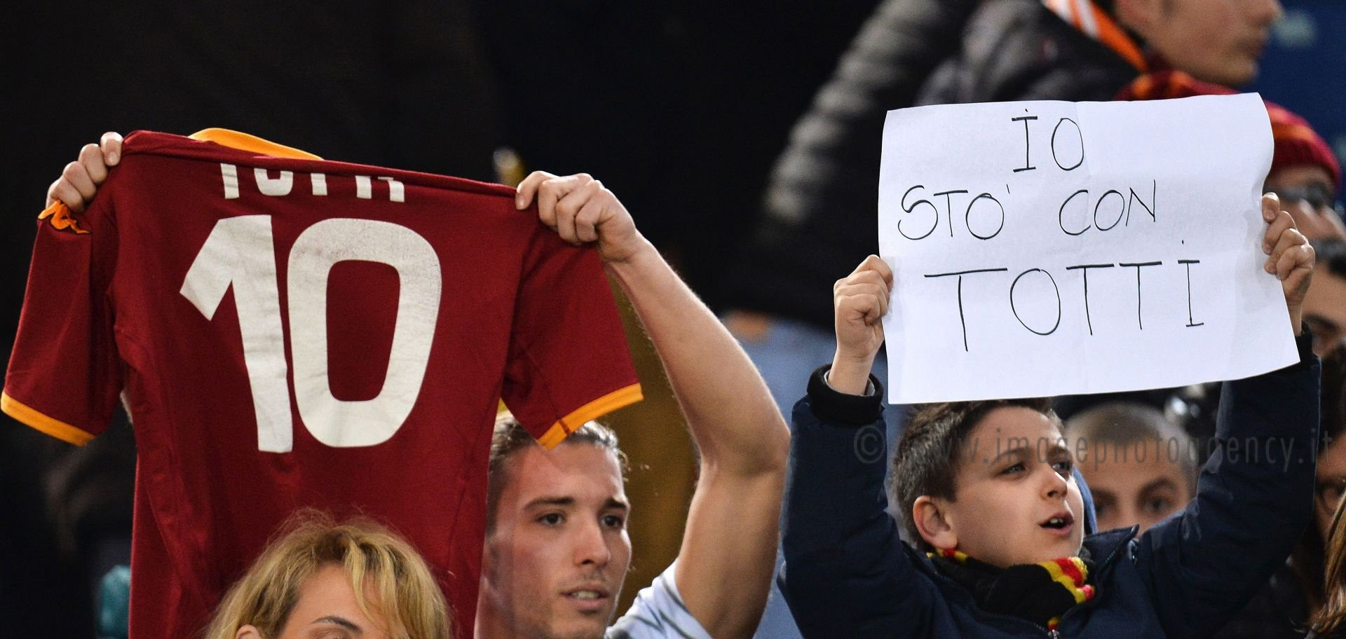 Già nel pomeriggio Totti ha potuto godere della solidarietà dei tifosi, dopo l’esclusione per scelta tecnica da parte dell’allenatore giallorosso. Un messaggio lasciato fuori casa sua: “Cambian le facce signori, gira la ruota del tempo. Ma la vecchia canzone s’alza ancora nel vento. C’è solo un capitano”. Molto eloquente.