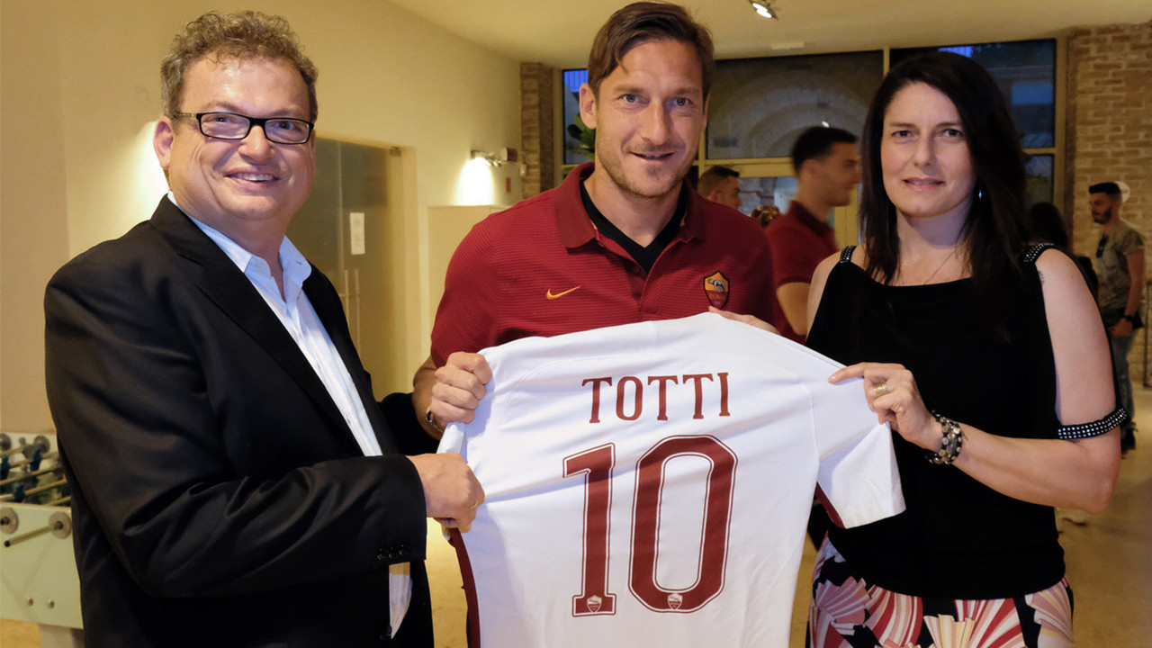 ‘I campioni veri non hanno una sola maglia, i campioni veri appartengono a tutti’. Una frase che Luca Campedelli ha voluto incidere sulla targa regalata a Francesco Totti, a nome di tutto il Chievo Verona per celebrare l’eccezionale carriera. ‘Un mito del calcio, che va al di là di ogni bandiera!’ è stata invece la motivazione che ha ispirato il “trio musicale” Castro-Izco-Spolli, autori di una canzone dedicata proprio al numero 10 giallorosso. Campione, mito, icona, ma anche fuoriclasse di solidarietà. Francesco Totti è tutto questo. E domenica a Verona se n’è avuto l’ennesimo esempio. Infatti in occasione della gara contro il Chievo, il capitano della Roma ha voluto regalare una sua maglia autografata ad Alessandro Cardi, Presidente di Cuore Chievo Onlus. La maglia sarà battuta all’asta e il ricavato contribuirà a coprire le spese per l’acquisto di un automezzo attrezzato da regalare ai volontari della Uildm Verona, che aiutano tutti i giorni le persone colpite dalla distrofia muscolare. Un gesto che ha emozionato tutti i volontari dell’associazione di beneficenza perché utile ad aumentare la somma di denaro raccolta in questi mesi.