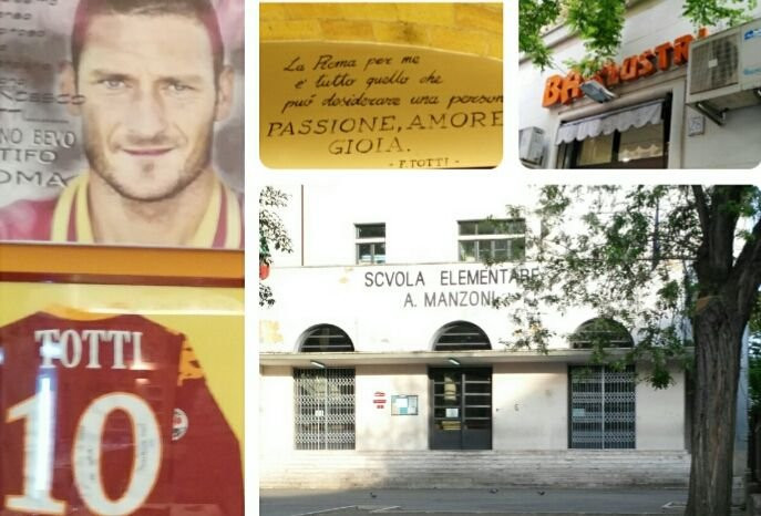 Scendo più o meno a metà e mi accoglie subito l’Alessandro Manzoni, la scuola di Totti. Un’occhiata intorno e la prima meta è il Bar Lustri. Marco, il proprietario, è poco più grande di Francesco e coetaneo del fratello. Ci parlo ed ecco i primi ricordi di “quando giocavamo a calcio insieme al parco o davanti alla Manzoni. Francesco era più piccolo, e era il fratello che certe volte non voleva farlo giocare con noi. Alla fine però veniva. Gli facevamo fare le giocate e poi gli dicevamo ‘vedi, sei bravo’. Ci chiamavamo dal balcone o dal citofono per andare insieme a giocare a pallone”. E’ questo il bar dove Francesco giocava sempre all’ormai famoso flipper, troppo alto per lui che aveva bisogno dello sgabello. “Non c’è più ora, non ci gioca più nessuno”. Tristezza. Ma quello che resta è il ricordo di un ragazzino piccolo e biondo, diventato grande in tutti i sensi.