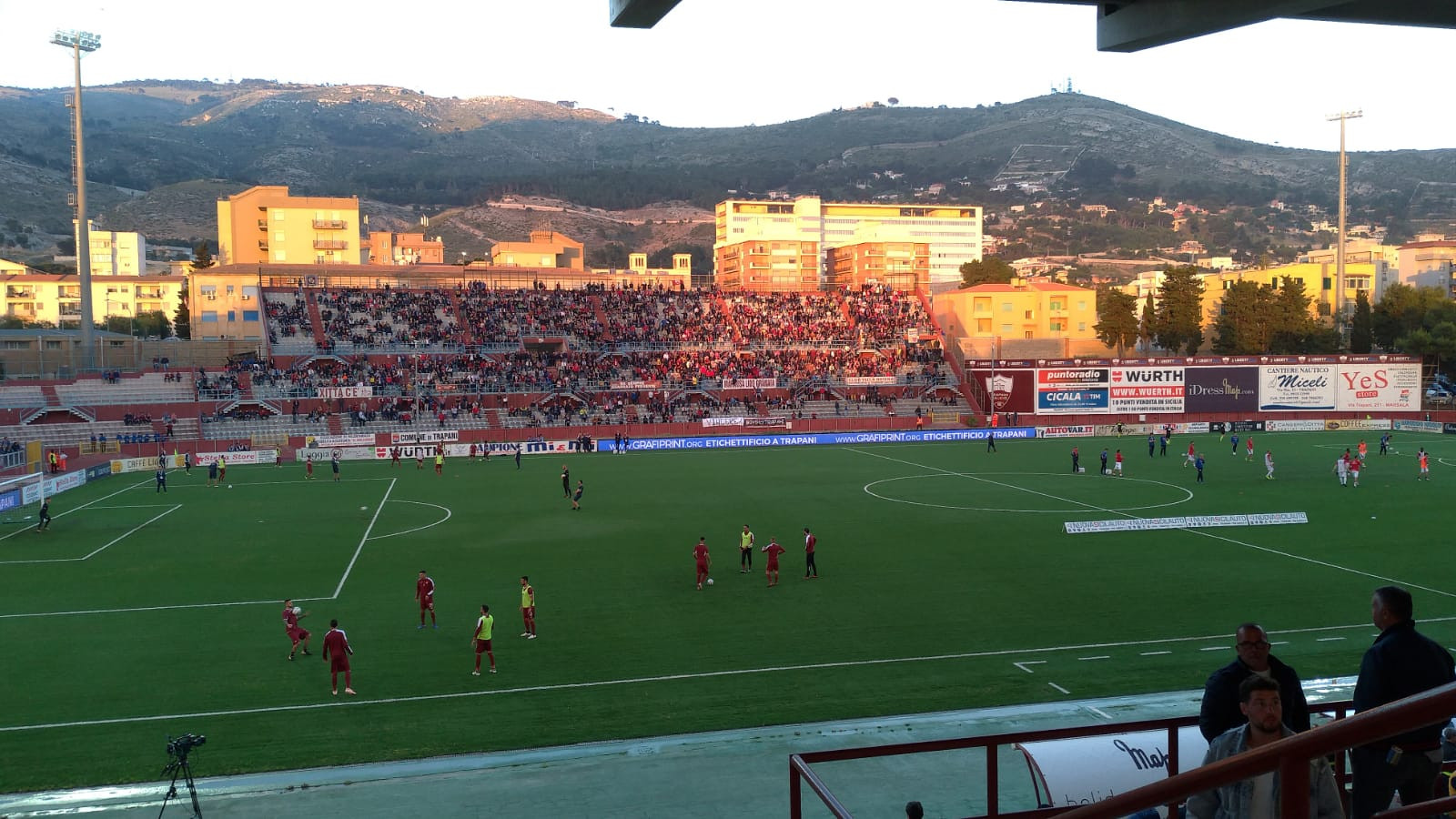 Si gioca per la Serie B e i colori delle due tifoserie (oltre 6.500 del Trapani) si mischiano, con il tramonto che fa da sfondo ad una gara che avrà solo una vincitrice.