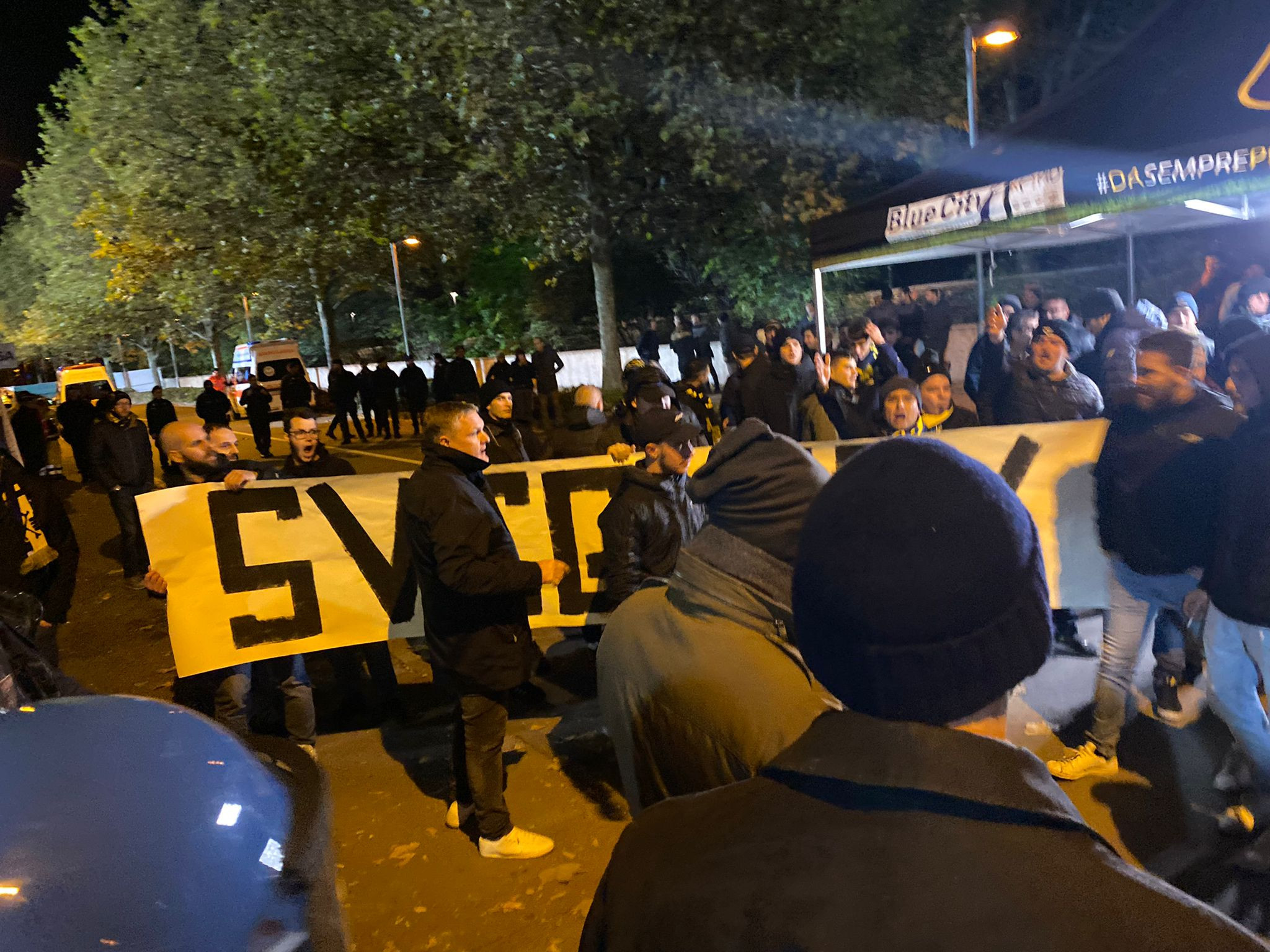 Il tutto poi si è risistemato anche con l’intervento del Presidente Giacca a calmare gli animi a colloquio con i tifosi gialloblù. Parole di incoraggiamento per continuare a chieere il supporto dei sostenitori verso i suoi ragazzi per uscire tutti assieme dalla situazione. Questo quanto si può notare dalle immagini riportate dal ‘T Quotidiano’ (foto copertina)