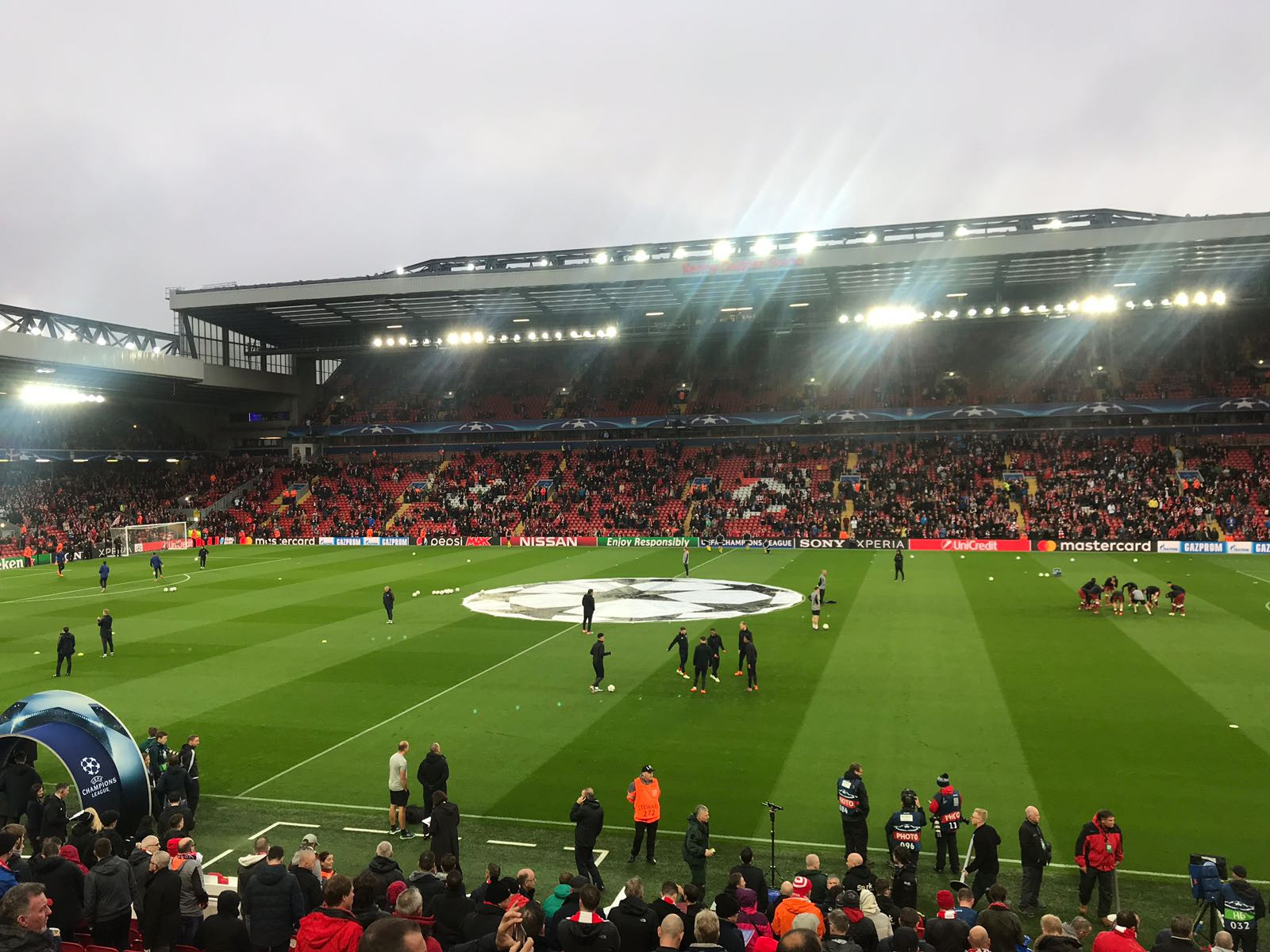 Poi arriva il momento dell’inno dei Reds. Tutto lo stadio canta “You’ll never walk alone”. Le squadre entrano in campo. E si va, al via la prima gara di questa fase finale della Champions League in un’atmosfera incredibile.