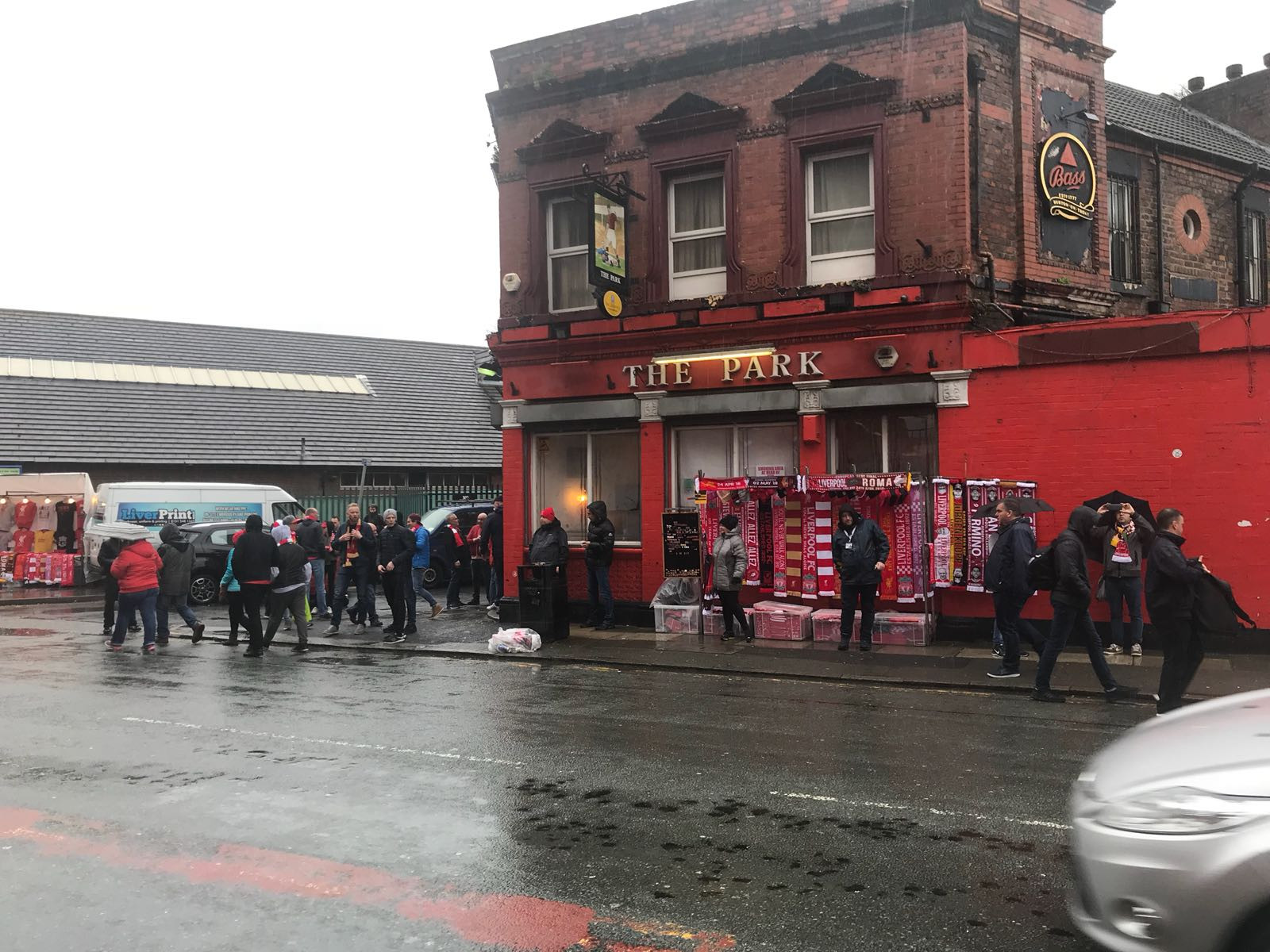 Poche ore al fischio d’inizion dell’andata della prima semifinale di Champions League, Anfield si prepara a fare da cornice ad un Liverpool-Roma che si preannuncia ricco di pathos ed emozioni. Entusiasmo e cori già alle stelle fuori dallo stadio, con il solito ‘The Park Pub’ (situato di fronte la Kop) preso d’assalto dai tifosi reds per prepararsi alla partita mandando giù qualche boccale di birra, utile anche a combattere pioggia e freddo. Tanti supporters del Liverpool, pochi al momento quelli della Roma, molto discreti e silenziosi intorno allo stadio. Il countdown è già cominciato, tra poche ore sarà Liverpool-Roma, Anfield si prepara a regalare spettacolo.