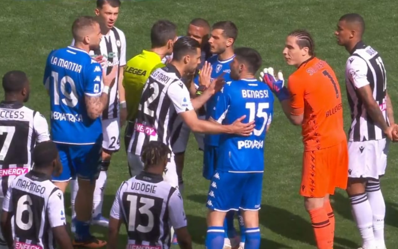 In quel momento, il direttore di gara è stato circondato dai giocatori di entrambe le squadre. Quelli dell’Empoli protestavano per l’annullamento del gol, mentre quelli dell’Udinese per la decisione di ripetere il rigore invece di assegnare un calcio di punizione per i friulani. Tuttavia, in area di rigore, oltre a Bandinelli, erano presenti anche diversi giocatori dell’Udinese, per cui arbitro e Var hanno deciso per la ripetizione. Al secondo tentativo, Pinamonti è riuscito a segnare il calcio di rigore, trovando il suo decimo gol in campionato.