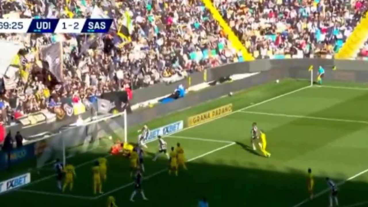 Al minuto 70 di Udinese-Sassuolo, la squadra di casa aveva trovato il gol del pareggio con Bertola da calcio d’angolo.