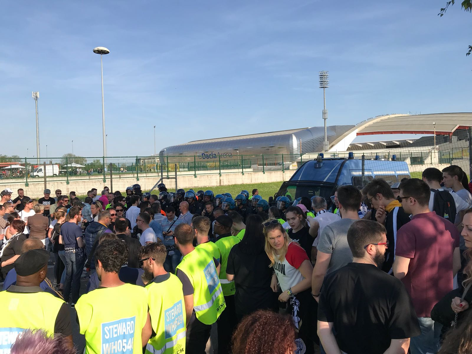 all’ingresso dei pullman. Il pubblico bianconero si è schierato con