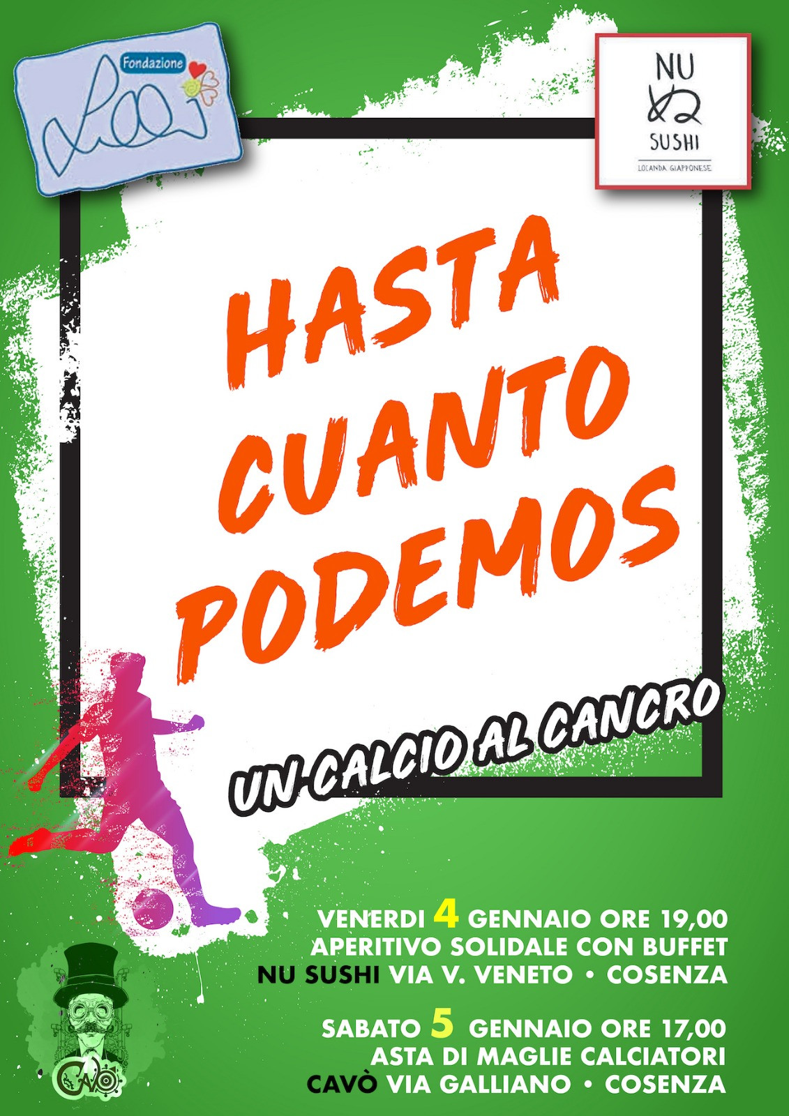 Calcio solidale per battere il Cancro e sostenere le cure per i malati. È il senso dell’asta benefica che si terrà il prossimo 5 gennaio a Cosenza. Iniziativa promossa da Fondazione Lilli e Nu Sushi con il sostegno del Cavó. Una mobilitazione di energie positive che calendarizzano iniziative per raccogliere fondi utili ad acquistare uno speciale frigorifero per il trasporto di medicinali per le cure dei malati di tumore e un riscaldatore Techne DB 3 Dri Block. Quest’ultimo uno strumento necessario per la corretta preparazione dei farmaci chemioterapici.