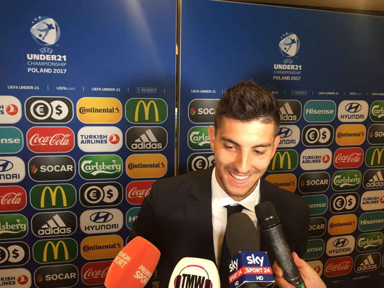 “Vogliamo vincere il girone: è il nostro primo obiettivo di questo torneo. Ho sentito Di Francesco, ci siamo visti a Trigoria, complimenti, se lo merita di stare alla Roma. Il mio futuro? Non so. C’è la mia disponibilità a tornare. La Roma sa cosa voglio, ma non vorrei tornare per giocare il più possibile e non da ragazzino della primavera. Con de rossi c si trova bene per forza. Spero che debbano venire qui in Polonia per le firme perché vuol dire che siamo ancora qui”.