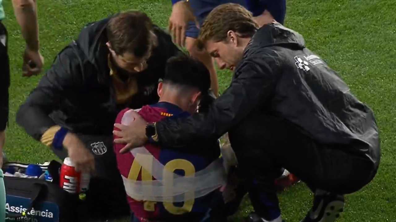 Il classe 2005, proveniente da La Masia, è stato costretto ad abbandonare la gara dopo soli 35′ a causa di un infortunio alla spalla.