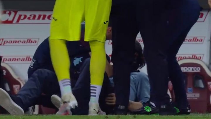 Questa situazione è durata fino a circa il 75esimo minuto del secondo tempo, quando Paolo Vanoli ha avuto le vertigini ed è caduto a terra. Ha perso l’equilibrio, ma mai conoscenza.