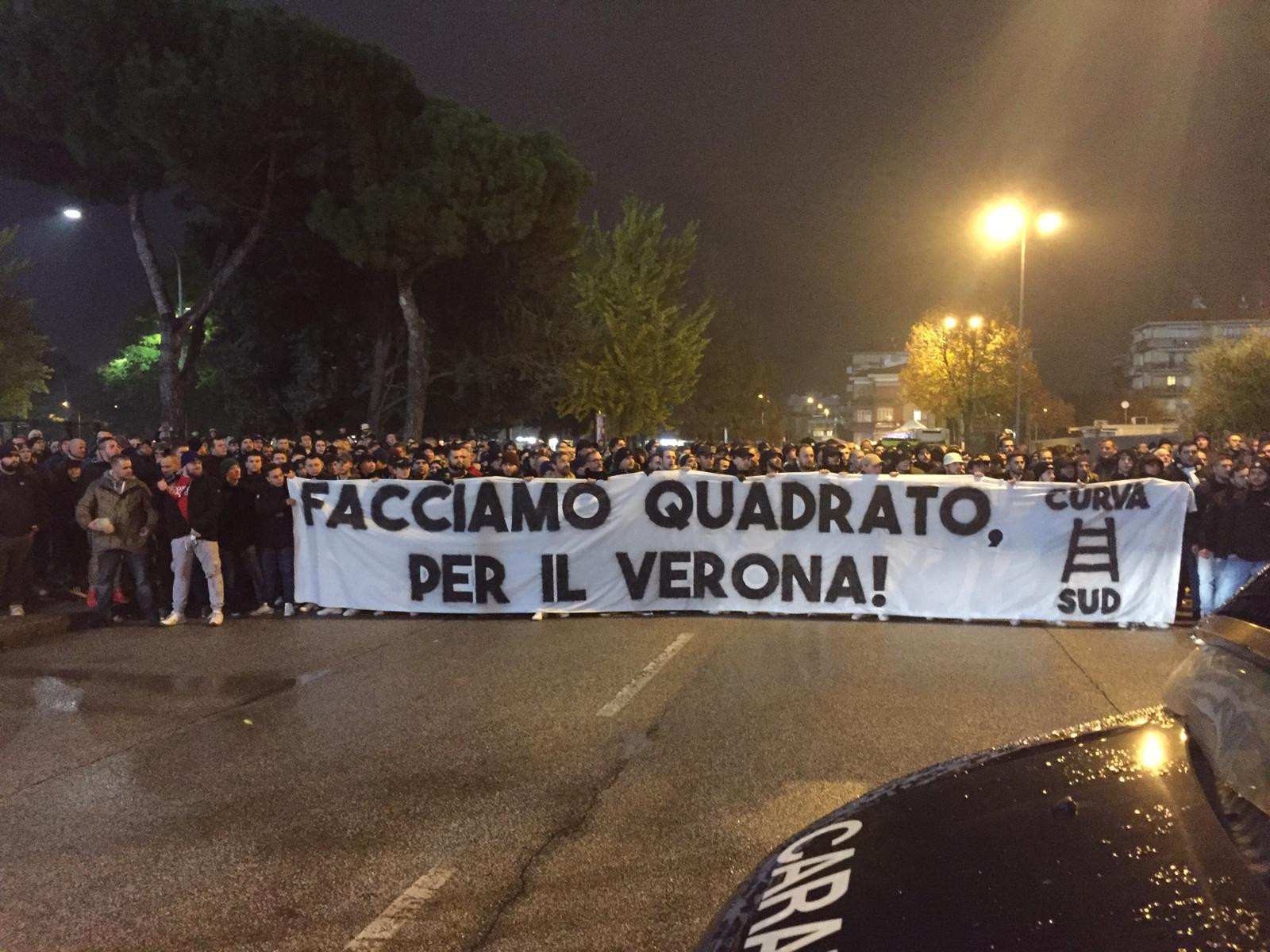 Una contestazione annunciata in settimana con un comunicato in cui si è letto: “Siamo ad un punto di non ritorno”. Un gruppo di tifosi (sui 250) dunque si è dato appuntamento intorno alle 19 sotto la Curva Sud, esponendo anche uno striscione: “Facciamo quadrato, per il Verona!”.