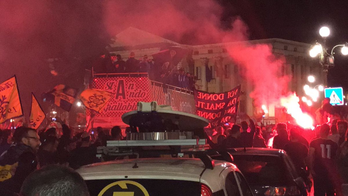 Una serata difficile da dimenticare: dopo un anno in Serie B il Verona torna in Serie A e lo fa dalla porta principale, senza passare per i playoff. Al fischio finale, al Manuzzi, è subito iniziata la festa della squadra. In campo prima, negli spogliatoi poi. Ma il pensiero nel frattempo andava inevitabilmente anche ai tifosi: a tutti quelli che hanno seguito il Verona in questa ultima trasferta di campionato, ai circa 10mila che presto hanno affollato le vie centrali della città. Maxischermi per vedere insieme la gara e poi via alla festa, in una piazza Bra gremita. Cori, bandiere sventolate in aria, un bagno della fontana: tanti modi per celebrare questo traguardo, perché la Serie A ormai è (di nuovo) realtà.