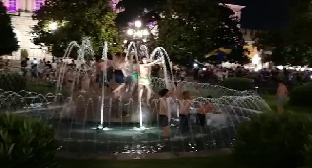 Tra cori e festeggiamenti però c'è anche tempo per un tuffo nella fontana, sempre al grido di "Ce ne andiamo in Serie A".
