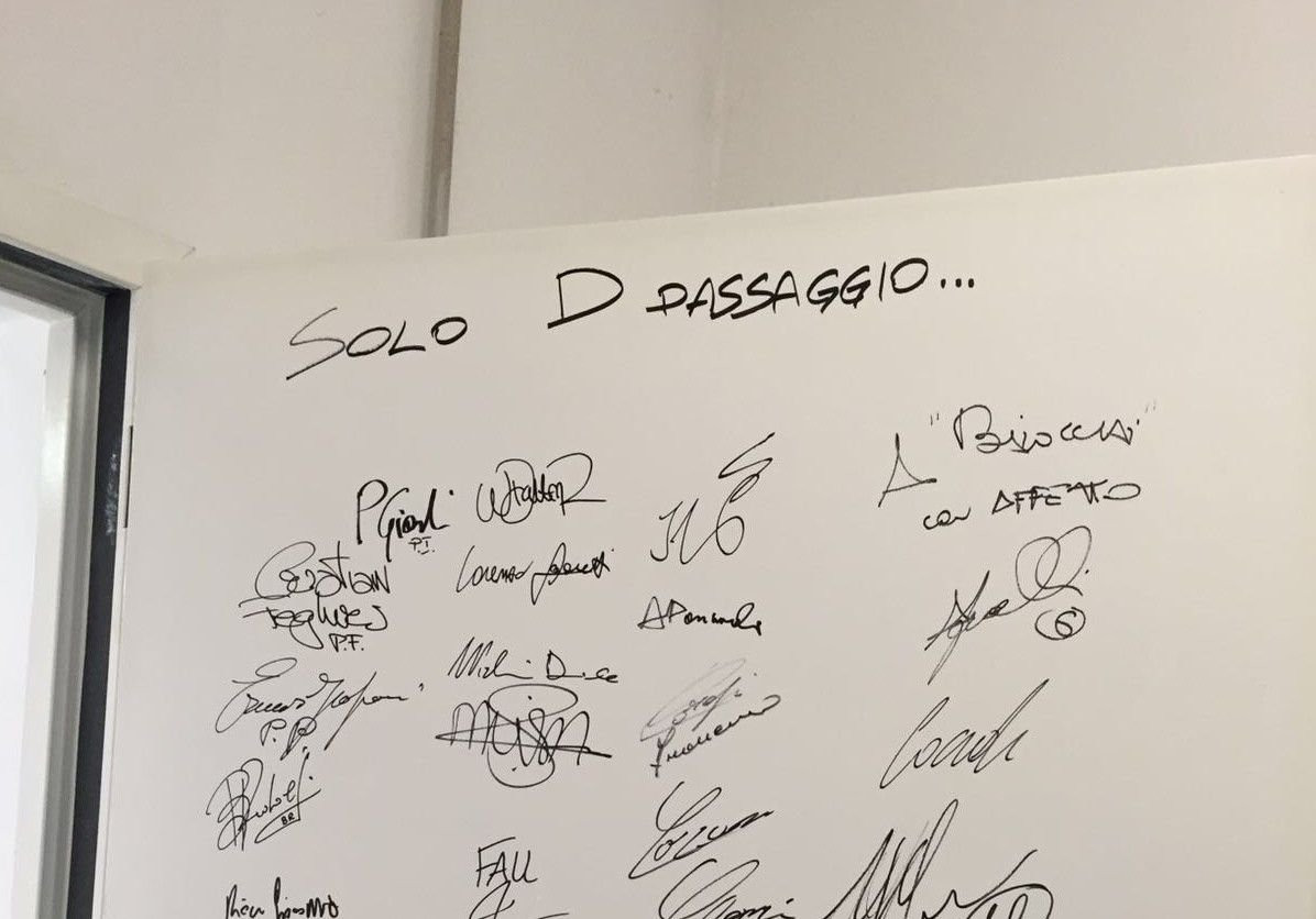La porta di ingresso del magazzino del campo sportivo di Collecchio è sempre stata bianca. Immacolata. Da quest’anno, invece, sarà caratterizzata per sempre da una scritta che Matteo Priori, padrone di casa in quelle stanze, ha voluto che fosse sottoscritta da tutta la squadra. “Solo D passaggio”: tre parole che per questi ragazzi hanno un significato molto importante. “Ho voluto che tutti i ragazzi mi lasciassero il loro autografo – racconta Matteo a gianlucadimarzio.com – perché su questa stagione c’è la firma di ognuno di loro”.