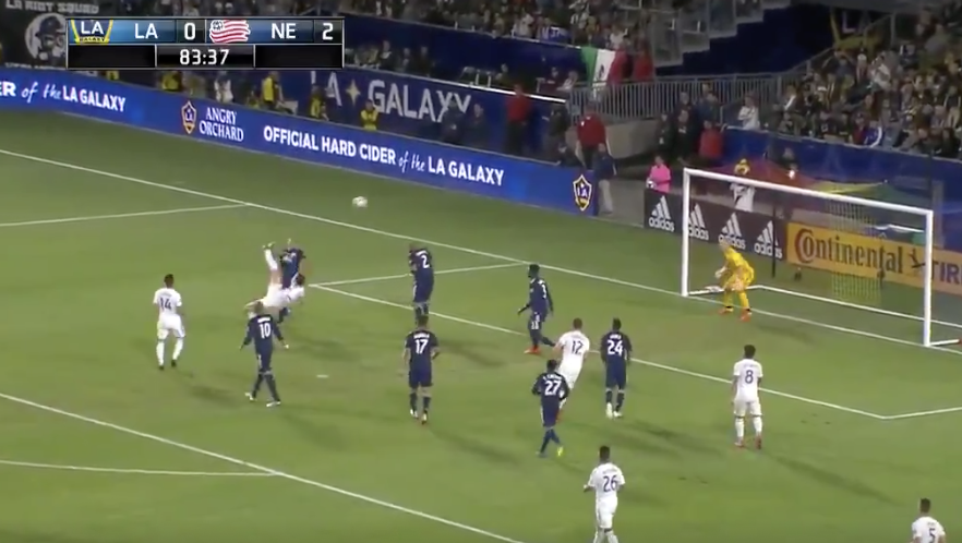 Anche se alla fine il gol non è servito nulla per il risultato (sconfitta per 2-1 contro il New England Revolution) a Los Angeles si ricorderanno a lungo questa serata per il gol di Zlatan Ibrahimovic. Minuto 84, e Ibra si prende la scena. Una palla vagante, uno stop, e una rovesciata strepitosa che finisce alle spalle del portiere avversario.