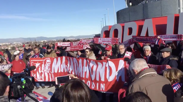 Godín e l’Atletico, una storia destinata a concludersi dopo otto anni. Nel suo futuro c’è l’Inter, che lo ha in pugno per la prossima stagione con un contratto di due anni con opzione per un terzo. Così oggi come annunciato, i tifosi Colchoneros si sono organizzati per un sit-in di protesta prima della partita giocata dalla squadra di Simeone contro il Levante. Un modo per mostrare vicinanza al proprio capitano, che però ormai sembra destinato a non poterlo esserlo più.