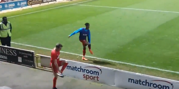 Un tifoso del Leyton Orient, club militante in National League (quinta serie inglese), ha invece ben pensato di immortalare la routine. È successo ieri, durante il match di campionato contro il Bromley. Tra le file del Leyton alcuni giocatori cominciano il riscaldamento a bordo campo… e a fianco a loro, dall’altro lato dei cartelloni pubblicitari, si aggiunge anche il singolare supporter.