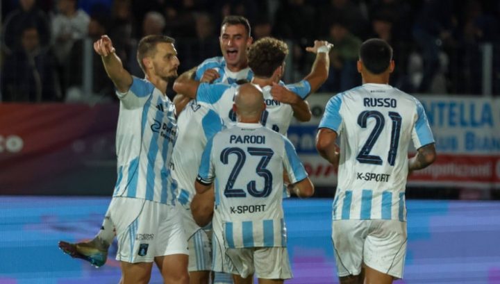 A dare il via alla notte magica dell’Entella il primo gol in maglia bianco celeste di Alessandro Debenedetti, classe 2003 di proprietà del Genoa, da quest’estate nuovo attaccante di Chiappella. Ad agosto il rinnovo col il grifone fino al 2029, poi la nuova esperienza a Chiavari dopo una vittoria del campionato di Serie C e la salvezza in Serie B nell’anno successivo con il Mantova.