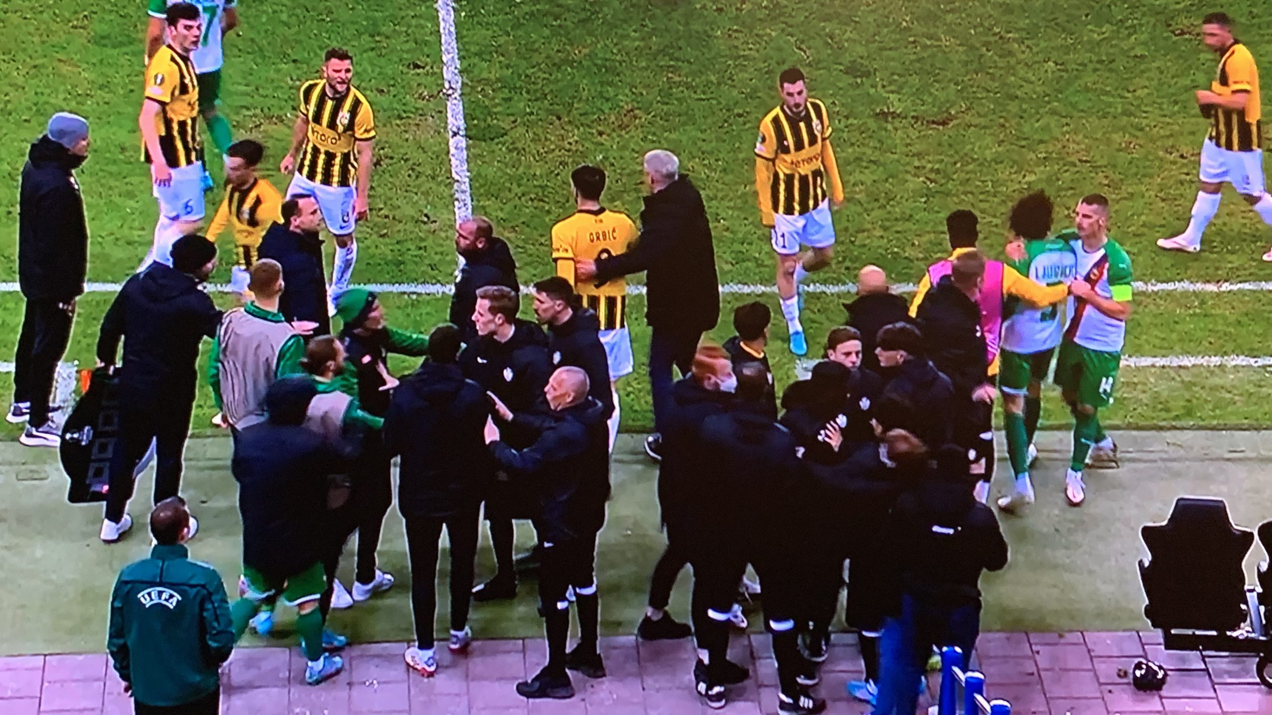 Al 78′ della gara di ritorno di Conference League, c’è stato uno scontro in mezzo al campo tra Auer e Orotz in mezzo al campo, con quest’ultimo che è stato ammonito. Dopo di che Dasa e Gruell sono venuti a contatto ed è scoppiata una rissa all’altezza del centrocampo a cui hanno preso parte anche i componenti delle due panchine. La questione si è risolta dopo pochi minuti con Dasa e Gruell che sono stati ammoniti.