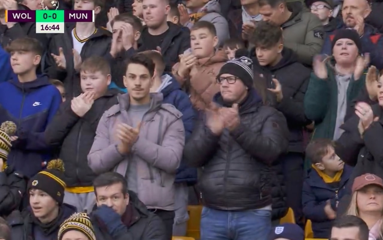 Momento toccante al Molineux Stadium durante la partita tra Wolverhampton e Manchester United.