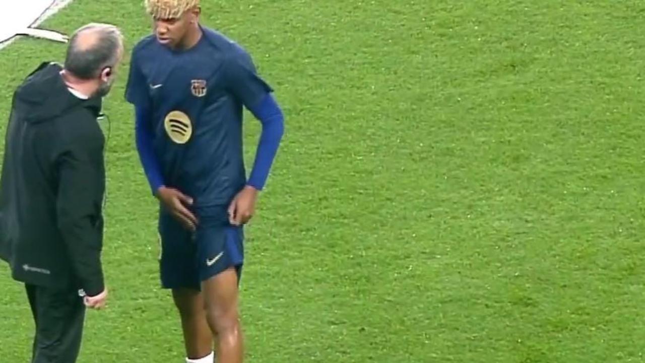 Lamine Yamal si è avvicinato al fisioterapista della squadra, lamentando di un piccolo problema all’adduttore.