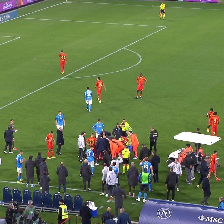 Allo stadio Maradona è subito calato il silenzio, interrotto poi da un applauso incoraggiante nel momento in cui il calciatore è stato portato via in barella e ha lasciato poi lo stadio in ambulanza. L'episodio ha inevitabilmente scosso il finale della partita, con grande apprensione da parte dei compagni, avversari e pubblico presente sugli spalti.
